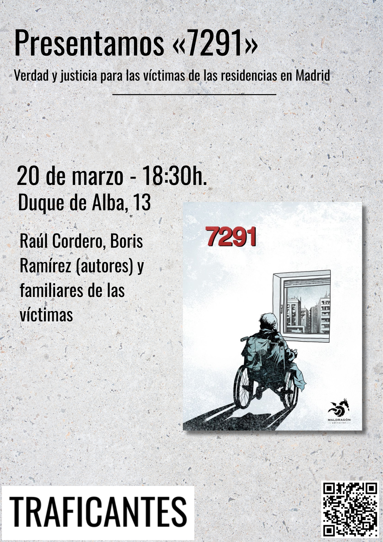 Entre marzo y abril de 2020, en las residencias de Madrid murieron sin recibir asistencia sanitaria 7291 personas. 6 años después, no hay responsables, ni política ni judicialmente. El cómic 7291 nos recuerda esta tragedia y es una importante contribución a la lucha por lograr Verdad, Justicia y Reparación.