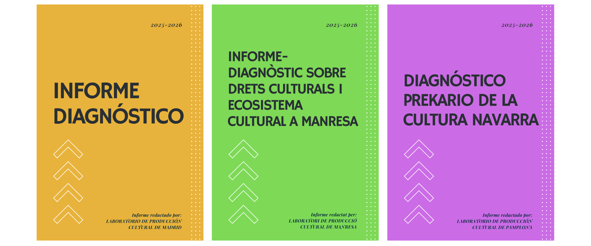 Se presentan tres informes de diagnósticos general elebaorador porlos Laboratorios de Derechos Culturales de Madri, Manresa e Iruña. Se trata de un pequeño mapa diagnóstico dentro del programa ECOSISTEMAS DE CULTURA CIUDADANA. Espacios y prácticas colaborativas desde el mundo del libro.