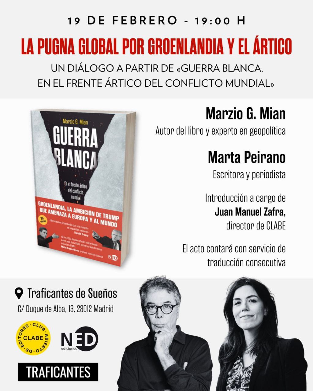 Un diálogo con Marzio G. Mian, autor del libro, y Marta Peirano, escritora e investigadora especializada en tecnología y poder,  a partir de «Guerra blanca. En el frente ártico del conflicto mundial».