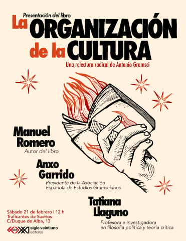 Presentación del libro «La organización de la cultura. Una relectura radical de Antonio Gramsci» a cargo de su autor, Manuel Romero.Con la participación de Anxo Garrido, Presidente la Asociación Española de Estudios Gramscianos y Tatiana Llaguno Profesora e investigadora en filosofía política y teoría crítica.