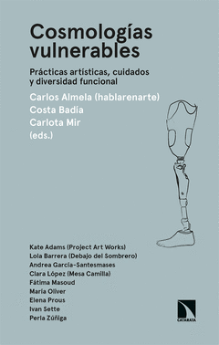 A través de voces diversas -artistas tullides, mediadoras, educadoras y activistas culturales- esta obra aborda los nudos y retos que atraviesan la autorrepresentación y las jerarquías en el campo de las prácticas artísticas vinculadas a la discapacidad, la neurodivergencia, la salud mental o los cuidados, y que han sido profundamente despolitizadas y desautorizadas. Surge de la voluntad compartida de hacerlas visibles desde una relectura crítica del cuidado y la vulnerabilidad, concebidas no como cargas o carencias, sino como potencias políticas desde las que pensar, cuidar, crear y vincularse. Su propósito es compartir experiencias, metodologías, relatos y ficciones críticas que cuestionan las estructuras capacitistas del sistema artístico, concibiendo nuevas formas de relación entre cuerpos, tiempos y saberes, con umbrales diferentes de dependencia, agenciamiento y exposición. Desde esta solidaridad situada, Cosmologías vulnerables traza alianzas que interpelan al museo, la pedagogía crítica y las políticas públicas para articular lo neurodivergente, lo discay lo afectivo como modos legítimos de conocimiento y de acción política.
