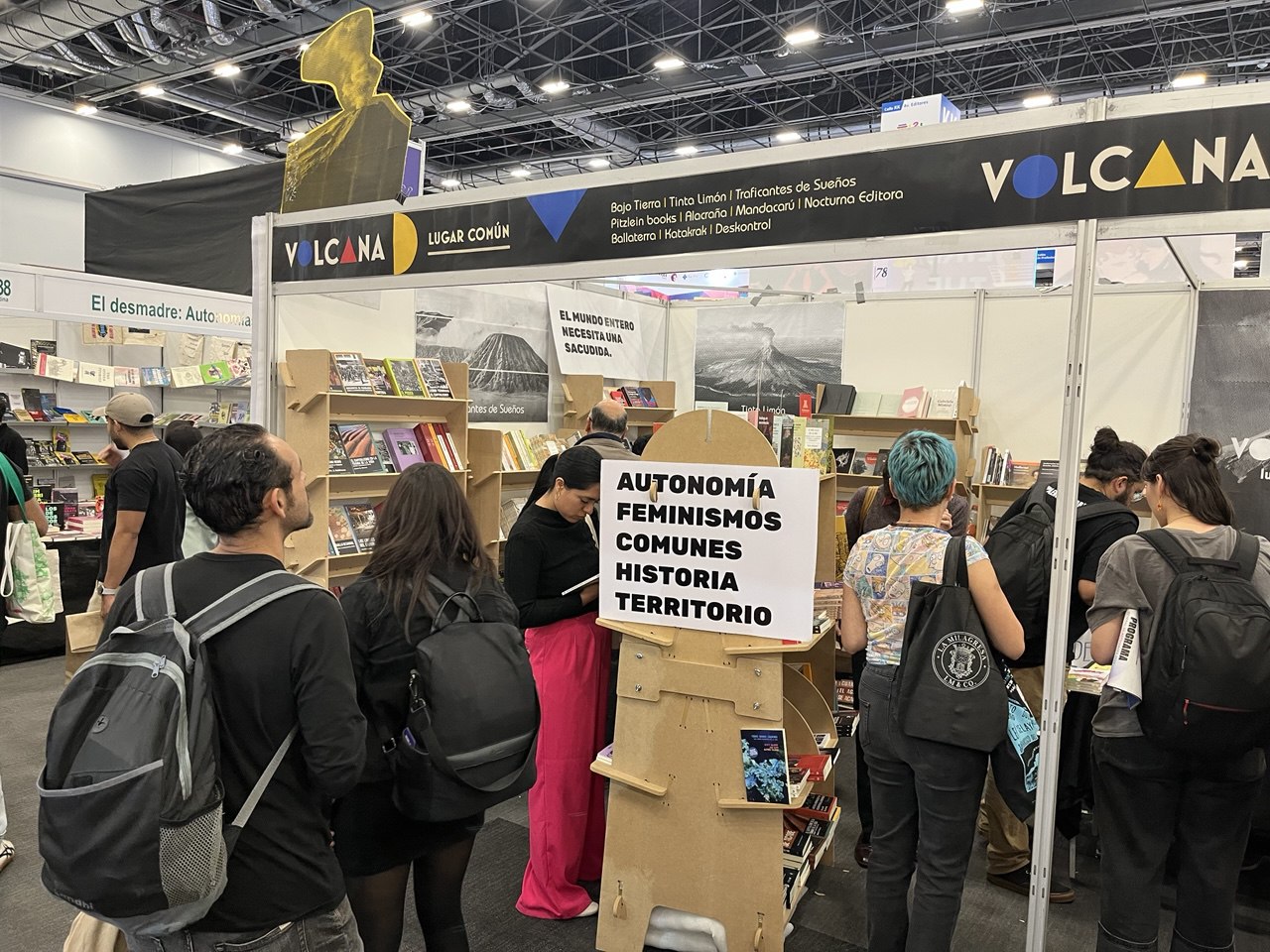 El trabajo de comercialización de nuestra editorial a través de la presencia en ferias internacionales lo estamos concentrando en Colombia y México durante los últimos 3 años. El año pasado, 2024, estuvimos en la Feria Internacional de Bogotá y en la Fiesta del libro y la cultura de Medellín. Nuestra presencia la aseguramos a través del proyecto de stand colectivo, Libros del Motín. Acabamos el año en Guadalajara (México), donde España fue el pais invitado. Mantuvimos nuestro stand doble bajo el nombre: Volcana-lugar común, junto con varias editoriales españolas, argentinas y mexicanas. Aprovechamos nuestra presencia para entrar en contacto con varias bibliotecas de estados Unidos y diferentes proyectos del Caribe.